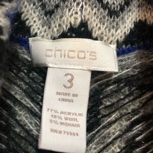 Chicos Jacket Womens 3 Blue Black Zig Zag Knit Open Front Wool Blend Sweater