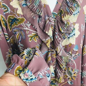Chico's Mauve Jacobean Bouquet Floral Pleated Ruffle Button Up Shirt Size 0 XS/S. Condition is "New with tags".