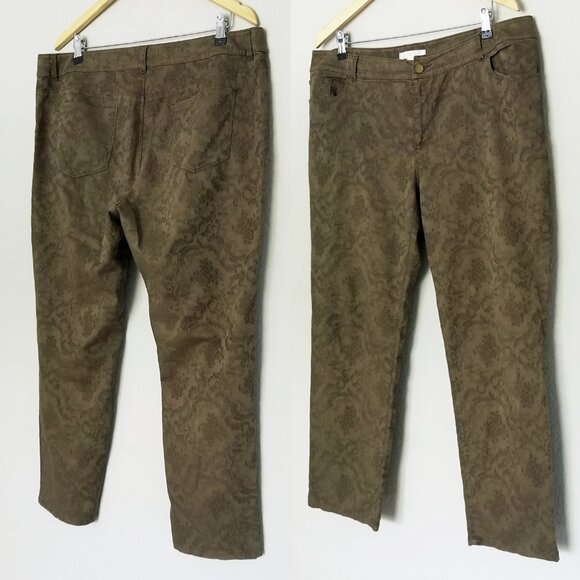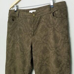 Chico's Jacquard 5 Pocket Ankle Pants in Sherwood Olive Women's 2.5 US 14 Green