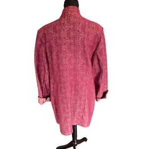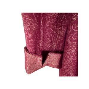 Chico's Jacquard Metallic Brocade Jacket Open Front Burgundy Gold Lurex M