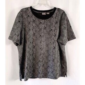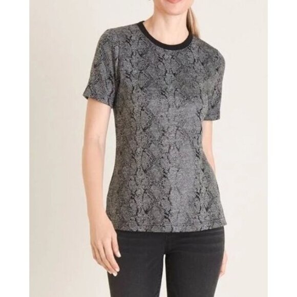 Chico’s Jacquard Snakeskin Print Tee Top Size XL 3 Stretchy Knit Shirt