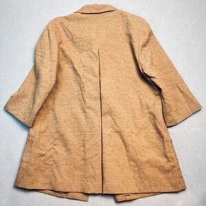 Chico's Jacquard Swing Coat Size 2 | Copper Gold Textured Jacket 3/4 Sleeve
