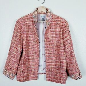 Chico's Jacqueline Orange Boucle Sequin Beaded Blazer