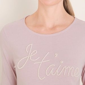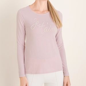 Chico's Je T'Aime Pearl Script Long Sleeve T-shirt Chico's Sz 0 or US S/4