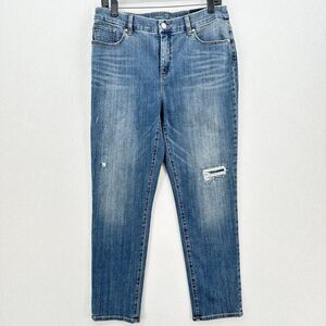 Chicos Jeans 1 US 8 So Slimming Girlfriend Ankle Stretch Blue Denim Distress NEW