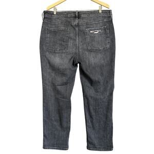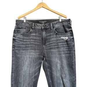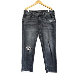 Chico’s Jeans 14 Charcoal Dark Wash Denim Boyfriend Ankle Leopard Patch Distress