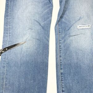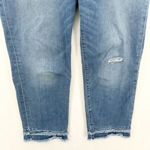 Chicos Jeans 2 US 12 So Slimming Girlfriend Slim Leg Crop Blue Denim Light Wash Distressed Patch Fray *Spot