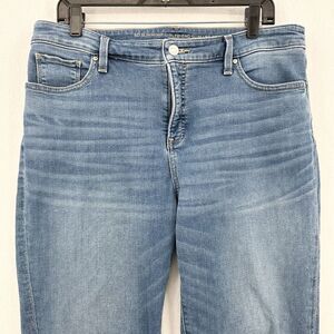 Chicos Jeans 2 US 12 So Slimming Girlfriend Slim Leg Crop Blue Denim Fray *Spot