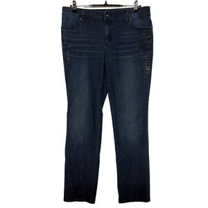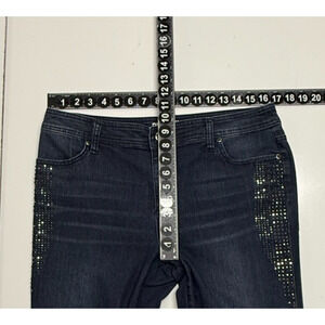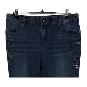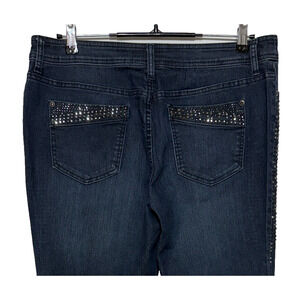 Chicos Jeans Medium 1 Blue Platinum Studded Embellished Bling Mid Rise Stretch Dark Wash Actual 33X31