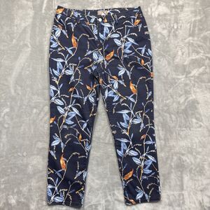 Chico's Jeans Size 2 (12) Platinum Floral Denim Cropped Stretch Pants Blue 34x27