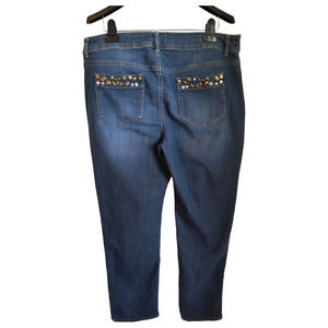 Chico's Jeans Women's Size 14 High Rise Dark Wash Stretch Embellished pockets