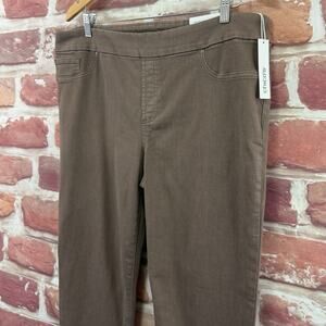 Chicos Jegging Jeans Women's 16 Brown Worn Look Stretchy Button Accent Ankle