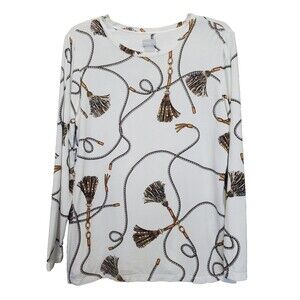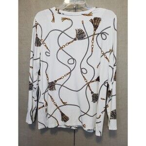 This is a Chico's Jersey Knit Tassel Chain Print Long Sleeve T-Shirt Size 2 Large