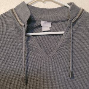 Experience the perfect blend of style and comfort with this Chico's V-Neck sweater in a versatile gray shade. Crafted from a soft knit material, it features a classic design with long sleeves, making it an ideal layering piece for any occasion. The regular fit ensures a flattering silhouette, effortlessly complementing your wardrobe.