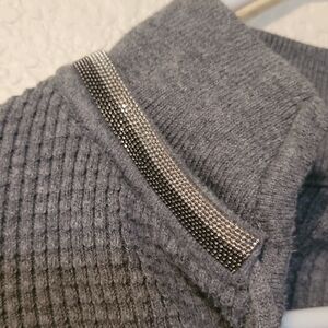 Chico's Jeweled Gray V-Neck Sweater Knit Long Sleeve