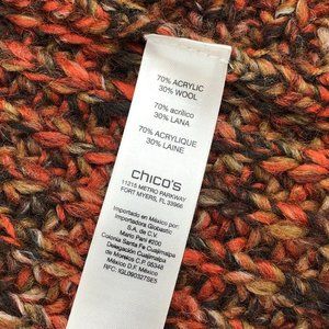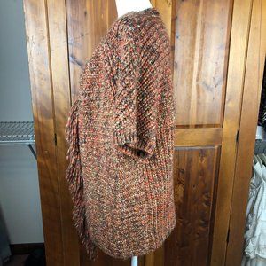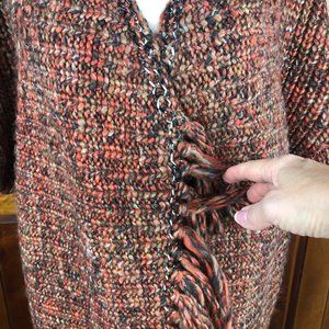 Chico's Katrina Boho Wool Blend Fringed Chunky Knit Open Front Cardigan Sweater