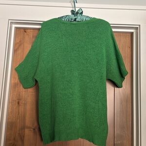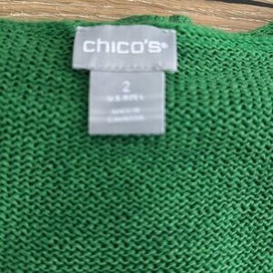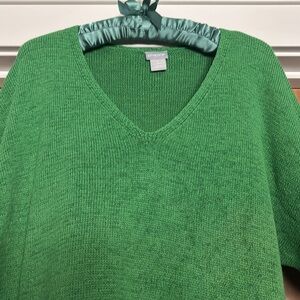 Chico’s Kelly Green Linen blend Sweater Women's 2/L V-Neck Lagenlook Coastal