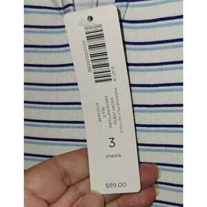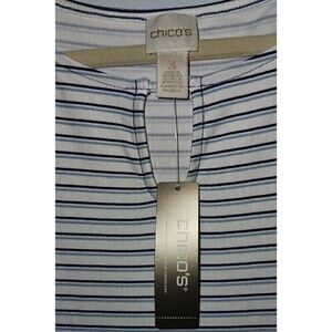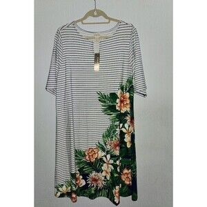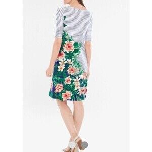 Chico's Keyhole Striped Paradise Palm Dress Sz 3 New Allover Print 16 XL. Measures approximately 21 inches armpit to armpit and 38 inches long. Originally $89