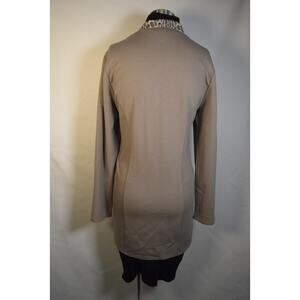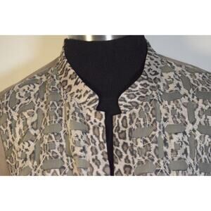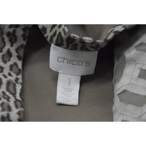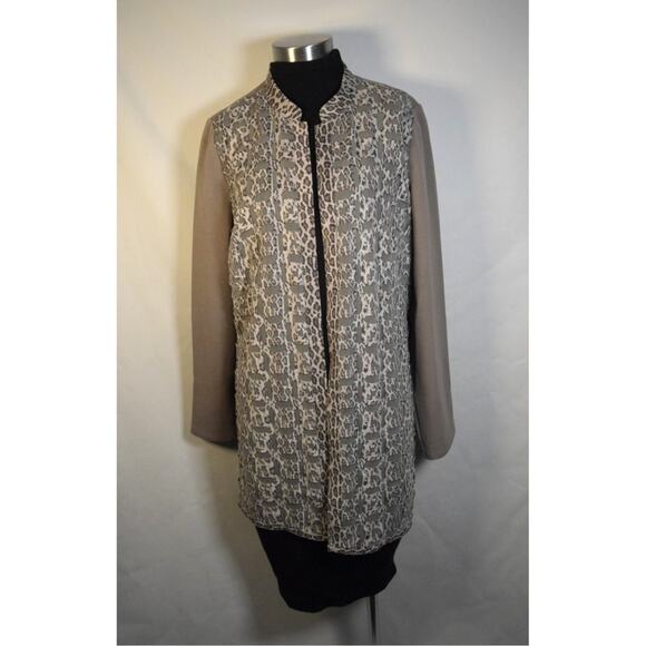 Chico's Khaki & Leopard Print Mesh Duster Open Front Jacket Sz S Career Dressy