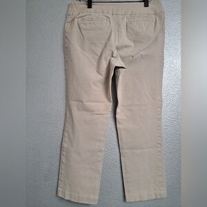 wide waistband 9" rise, zip & clasp closure, straight leg, inseam 25"