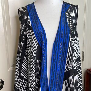 Chico’s Kimono Caftan Jacket Vest Cover Up Blue One Size L