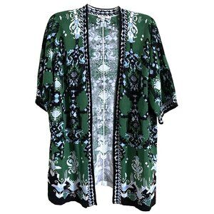 Chico's Kimono Open Front Ikat Cardigan Sweater XL Short Sleeve Knit Linen Blend