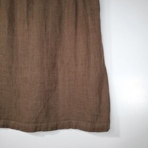 Features : a-line silhouette, knee length skirt, 100% linen, brown, lightweight, back zipper closure, back vent at hem, boho, casual, bohemian, travel, vacation