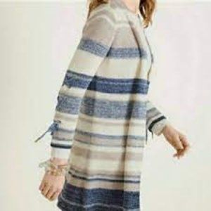 Cream & blue knit open cardigan sweater Size 0p or US Sp ~ Like new, no flaws