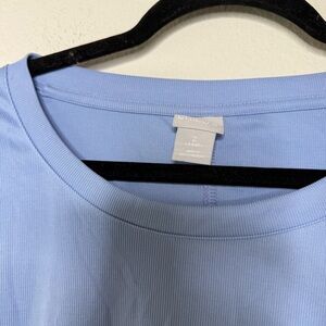 Chico’s Knit Top Sandwash Wedge Tunic Top 3/4 Sleeve Blue Veil Size 2 US SIZE 10