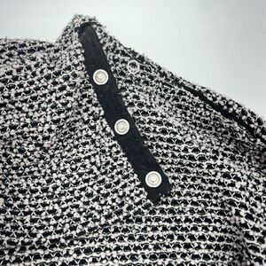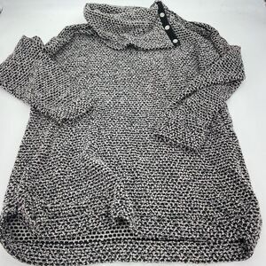 Chicos Knobby Texture Snap Neck Sweater Size XL Black White