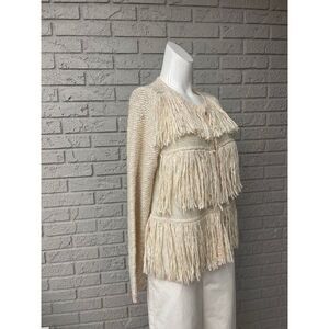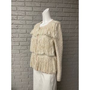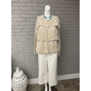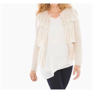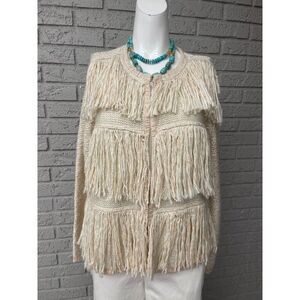 Chico’s Kyleigh Women Cream / Gold Tiered Fringe Cardigan Size 1 (S)