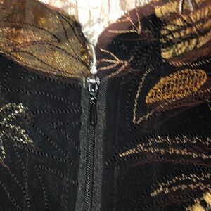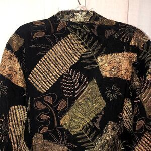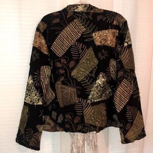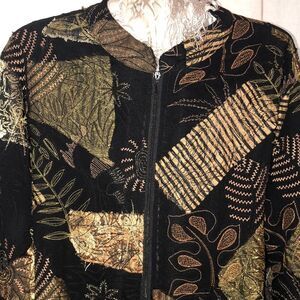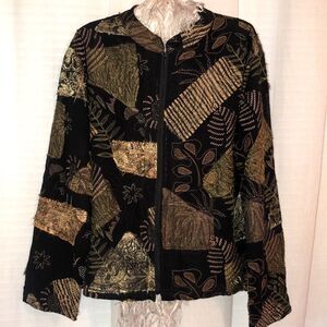 Chico’s L Black Green Gold Patchwork Embroidered Light Full Zip Jacket