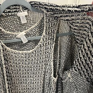 Chico's LARGE size 2 Black and White Cardigan Sweater with Chunky Knit SET