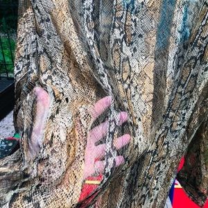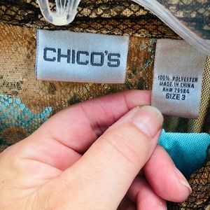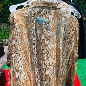 Chico’s LG-XL brown & tan snake print semi sheer button down blouse Chico’s 3