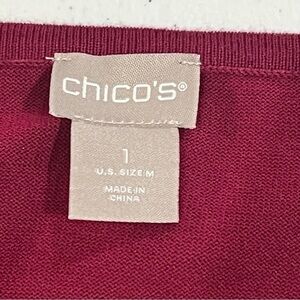 CHICO'S LONG SLEEVED CREW NECK SWEATER▫️ Size Chico's 1▫️ Color Wine▫️ Excellent Condition ▫️ No Holes, Rips, Tears or Stains ▫️Will be packaged with care and shipped within 2 days ▫️Ships from smoke free home ▫️ Machine Wash▫️Measurements on request ▫️Thank you for shopping Ellah Ann's Closet.