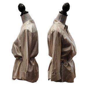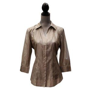 Chicos LS V-Neck Button Up Blouse | NWT | 1 (Small) | Silver Metallic