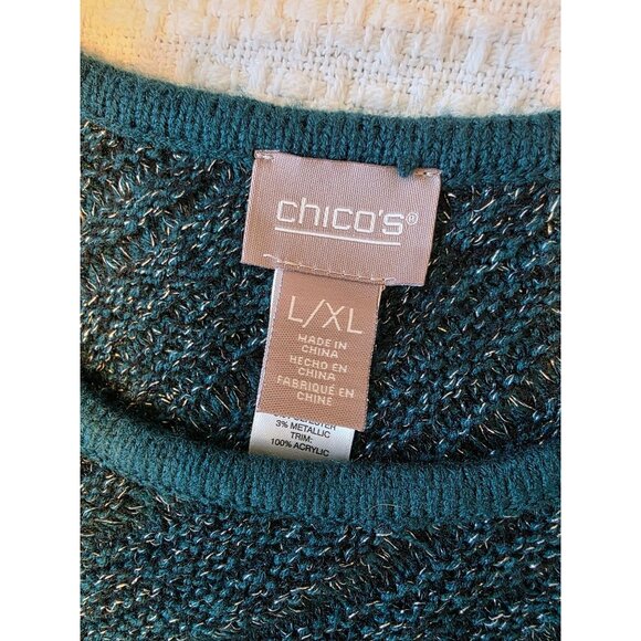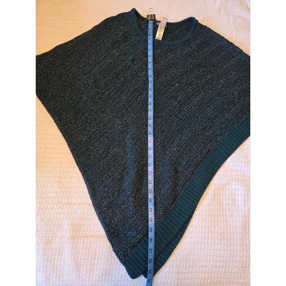 Chicos L/XL Asymmetrical Pullover Poncho With Ribbed Hemline & Metallic Thread