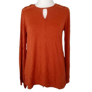 Chico's Lace Detail Shoulder Long Sleeve Burnt Orange Blouse Tunic Length Size 0