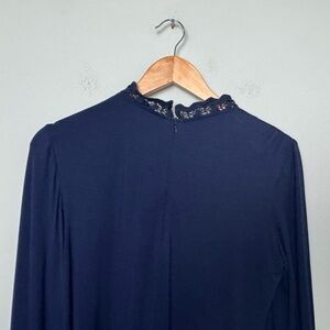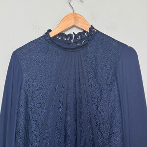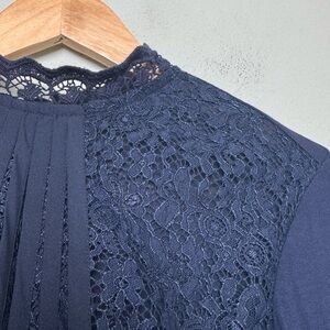 Chico’s Lace Front Top Long Sleeve Fashion Knit Blouse in Deep Navy
