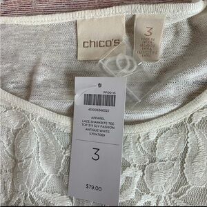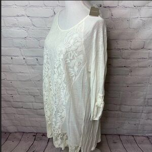 Chico’s Lace Linen Blend Antique White Tunic Top XL NWT