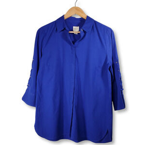 Chico's Lace Up 3/4 Length Sleeve Button Up Collared Blouse Royal Blue Size 0 / Small