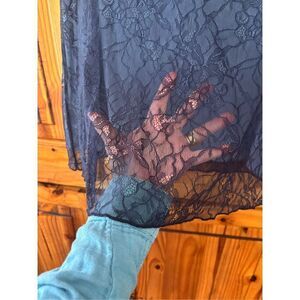 Scoop neck tank. Lace overlay is black nylon. The grey tank is cotton and modal. Chico’s size 1. Pit to pit measure is 18.5 inches. Length is 24.5 inches.