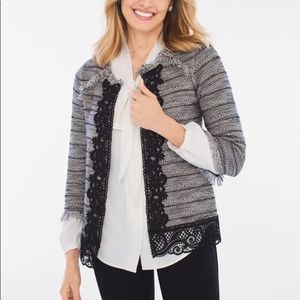 Chico’s Lace Trim Tweed Fringe Cardigan 1 M