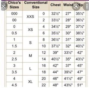 • Size: Chico’s 2 (equivalent to US L/12)