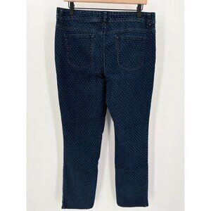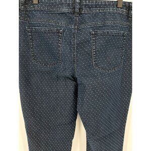 Chicos Ladies Dark Wash Polka Dot Jeans Size 1.5 Straight Leg Lightweight 10