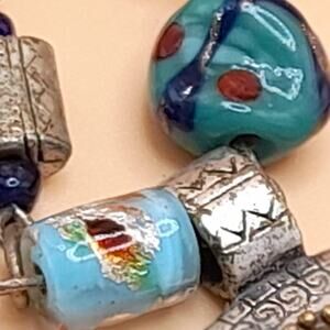 *Description: This is a beautiful Chico's necklace with lamp-work glass beads and floral pendant with rhinestones. The necklace is 20 inches in length and the pendant is 2 inches by 1 5/8 Inches. This would be a great addition to your jewelry collection or make a great gift!
