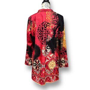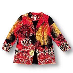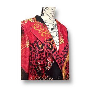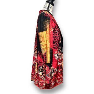 Chico’s Large Red Gold Baroque Print Blazer Jacket Statement Artsy Boho Tapesty