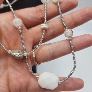 Chicos Layered Beaded White Mother Of Pearl Multi Strand Neacklace 26-34" Long. New with tags.