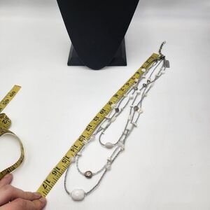 Chicos Layered Beaded White Mother Of Pearl Multi Strand Neacklace 26-34" Long
