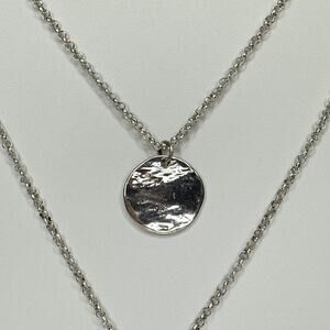 Chico's Layered Hammered Disc Rhinestone Silver Long Necklace ✨